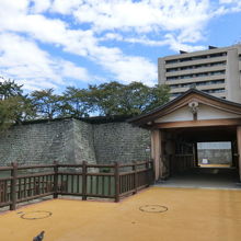 「おろうかばし」と読みます。お堀の上にかかっている、珍しい屋根付きの橋です。歴代の福井藩主の専用の橋だったそうです。2008年に復元されたようで、比較的まだ新しいです。石垣、お堀、橋をあわせて見ると、なかなか風情がありました。