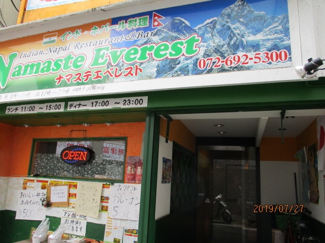 ナマステ エベレストは 阪急富田駅とJR摂津富田駅の間にある商店街から少し細い道を入ったところにあるインド ネパール料理のレストランです。お店の前でテイクアウトの販売もしています。初めて店内でランチをしました。一番目の客で、最初暑かったのですが、すぐに冷房を入れてくれて涼しくなりました。ランチのカレーセットはカレーの種類、辛さ、ドリンクが選べます。(ナン・野菜サラダ・スープがついています)私はなすのカレーにしました。辛さも希望どおりちょうどよく、ナンもおいしかったです。