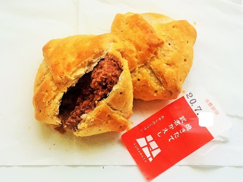 熊本駅にある肥後よかモン市場でお土産を探しているとできたての美味しそうな香りがしていたので立ち寄りました。その中に「武者がえし」のお菓子に目が止まり購入しました。大きさは手のひらサイズのパイ生地で触感はすごくサクサク感がありまろやかなほどよい甘さのお菓子でした。パンで例えるとクロワッサンの中にあんが詰まっているような感じでした。もう一度来てお土産にしたいと思います。