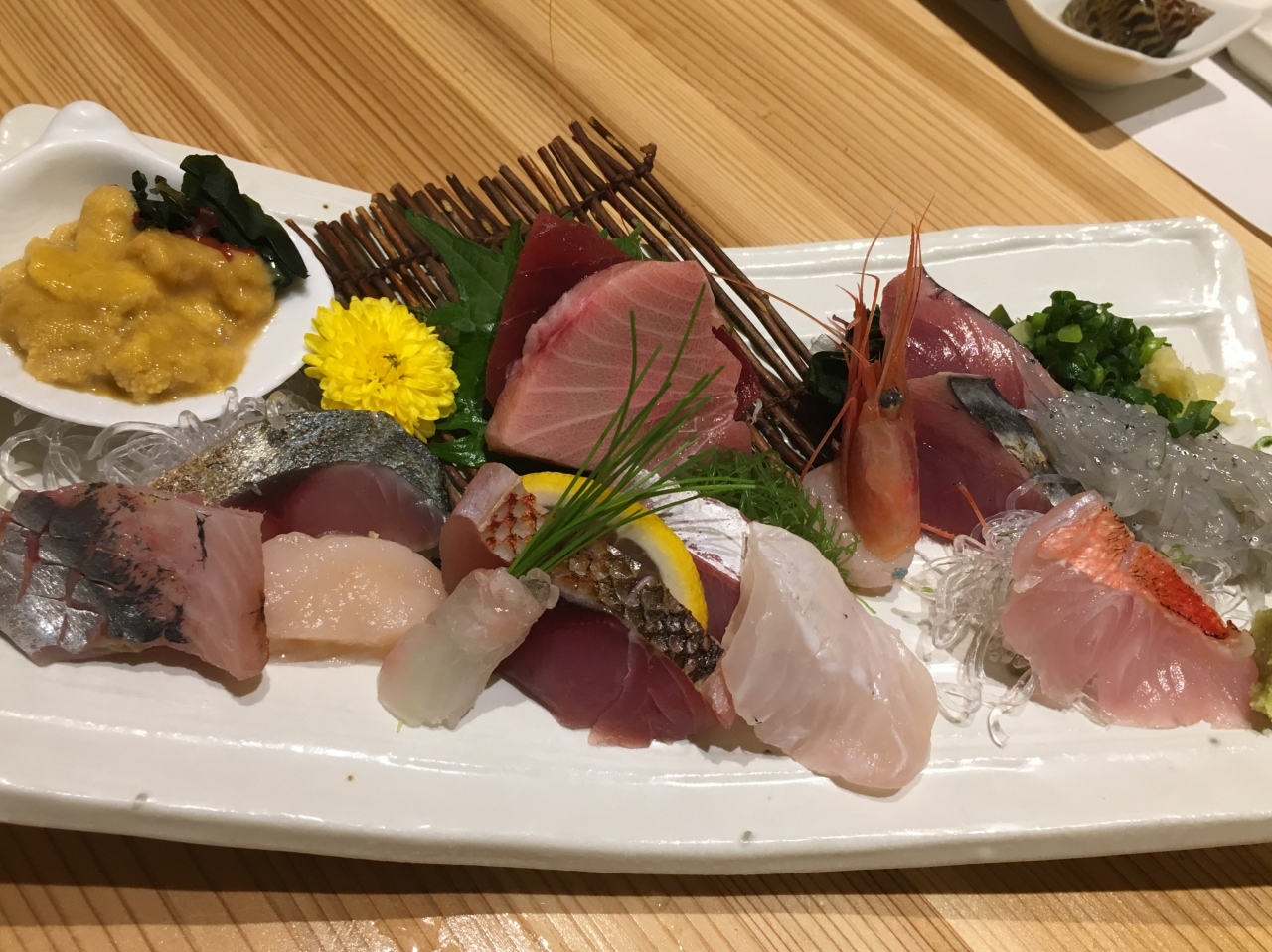 静岡駅北口から徒歩1分、高架下にあるのへその本店です。店はまだ新しく、半個室風のテーブル席が多く、グループでの利用にお勧めです。当日は女性客が多かったです。ちょっと割高ですが、寿司のほか、静岡グルメを全般的に楽しめます。