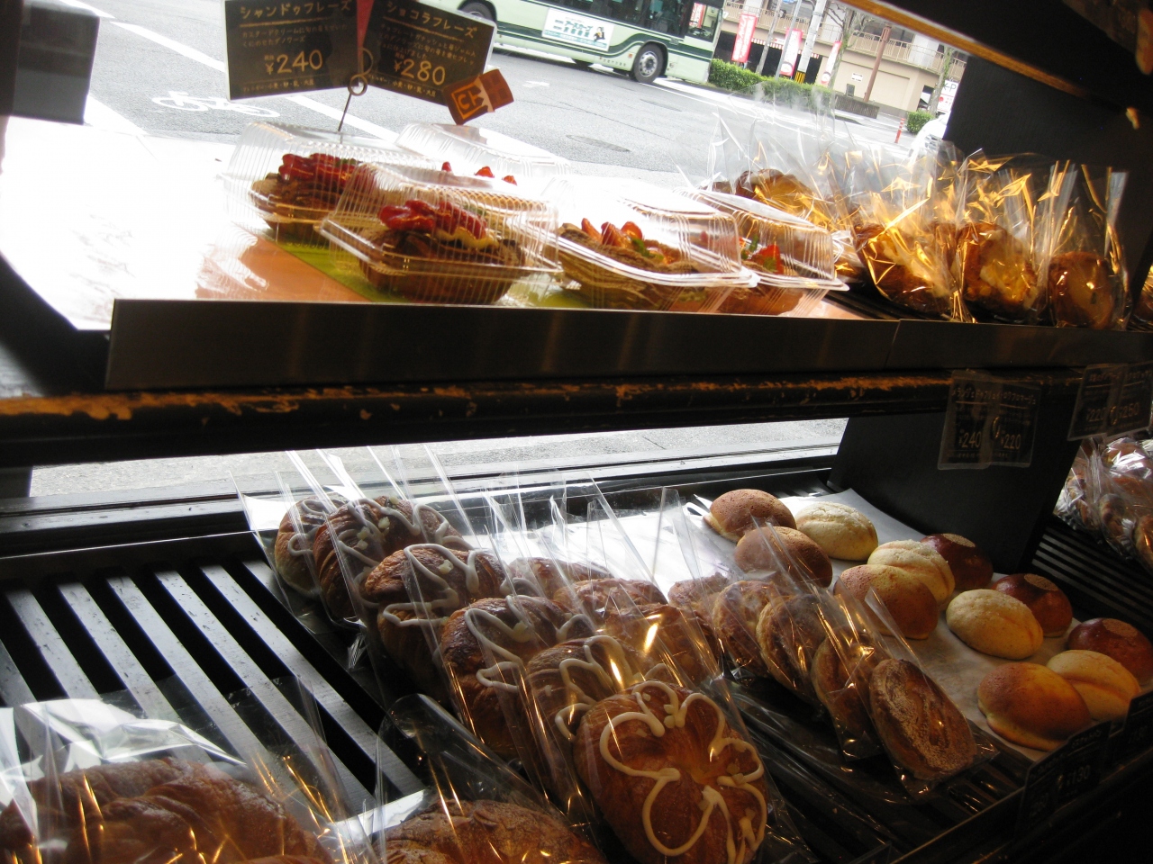 外から見ると美味しそうなパンが並んでいます、丁度小腹が空いたので入ってみる事にします。
