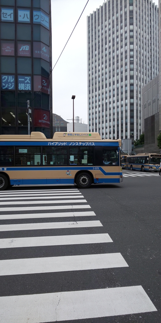 横浜の市営バスです。クリーム色に青いラインが特徴のバスで、横浜市をあちこち走行している横浜ではメジャーなバスです。