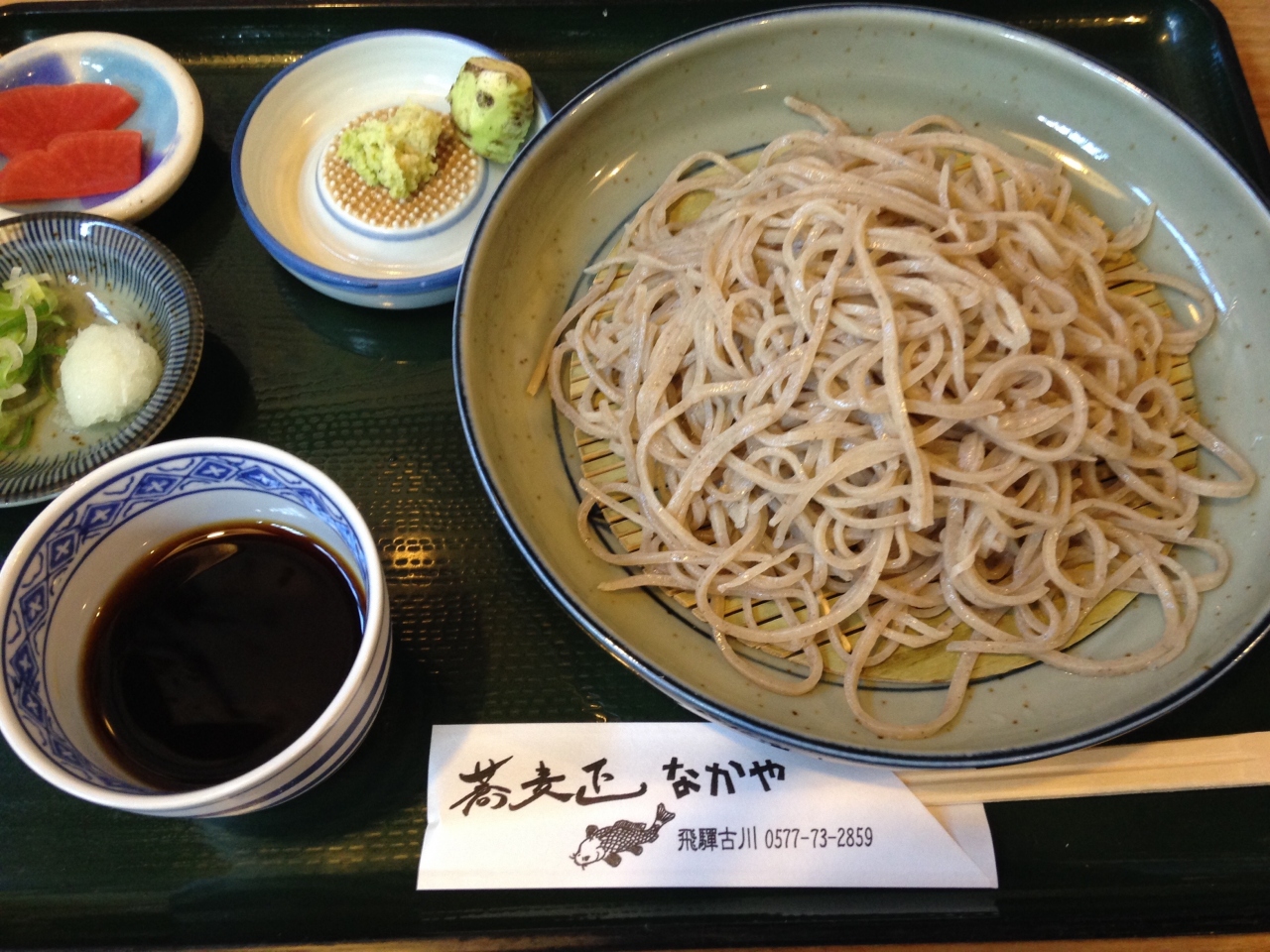 飛騨古川の古い町並みの中にある地元の蕎麦屋です。せいろをいただきました。さすが水の町だけのことはあり、そばがうまい。コシがあり歯ごたえもありますが、するっとのどこしもいい。自ら擦った本わさびも美味しい。