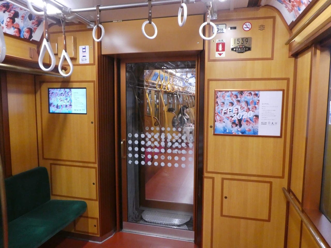 さて、全体的にレトロ感のある車両ですが、さらにレトロ調の車両がいました。外観もリベットが表現されていたり、内装も木目調だったり。これにあたれば1日いいことがあるような気がします。