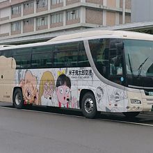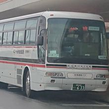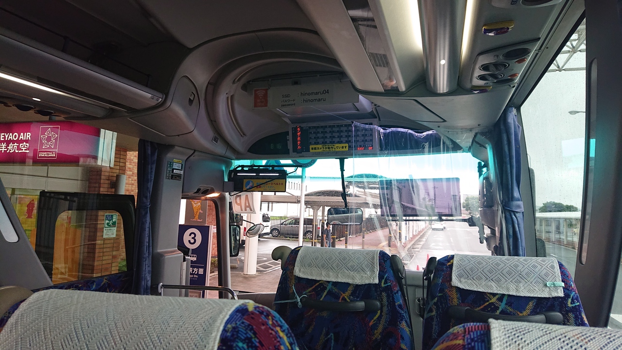 米子鬼太郎空港のアクセスの一つ。米子駅方面は日の丸バス(日の丸自動車)、松江駅方面は一畑バス(松江一畑交通)、境港へははめるーぷバス、倉吉へは日の丸バス(日の丸ハイヤー)が運行。このほか、フライトには連絡していませんが、米子駅からは路線バスも運行しています。空港では、同じ券売機で米子駅方面、松江駅方面のチケットを販売。鳥取県内、島根県内のバス事業者は、まだ交通系ICカードを導入していませんが、こちらの券売機では電子マネーの利用可能。ただし、30円とはいえ手数料が取られるのは何とも痛い。空港から米子駅までは、市内主要地を経由して30分弱、松江駅までは45分弱。いずれもフライトに合わせて運行されています。