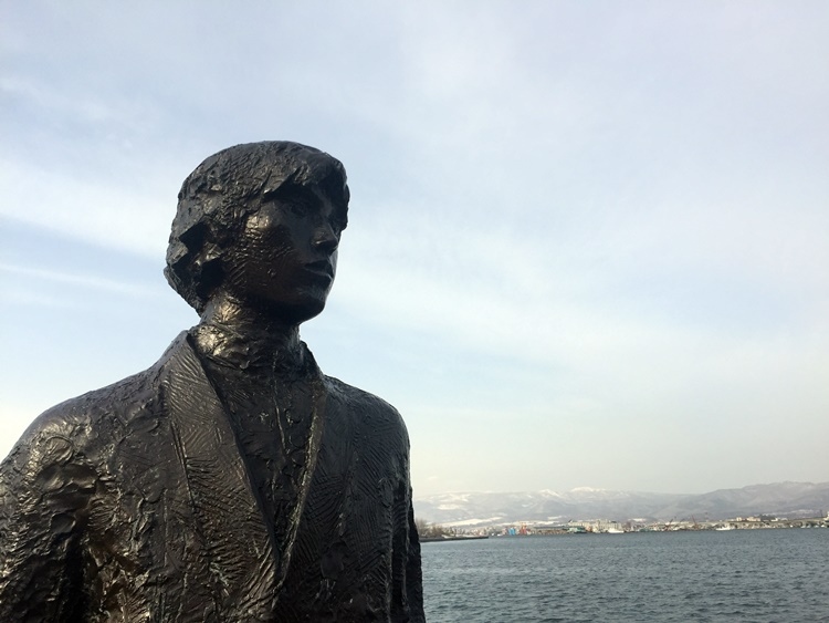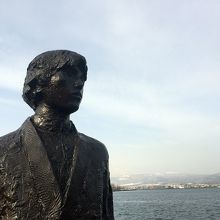 新島襄は当時箱館で諸術調所で教授をしていた武田斐三郎(五稜郭の設計者)に教えを乞うために箱館までやってきたのですが、すれ違いで武田が江戸に帰ってしまい、落胆した結果、渡米を画策することになったという説が唱えられています。渡航の碑は徒歩で5分ぐらい離れた場所にありますが、ちょうどこの西波止場が港が見渡せて観光客に便のいい場所であることも手伝ってこのブロンズ像が建てられているようです。