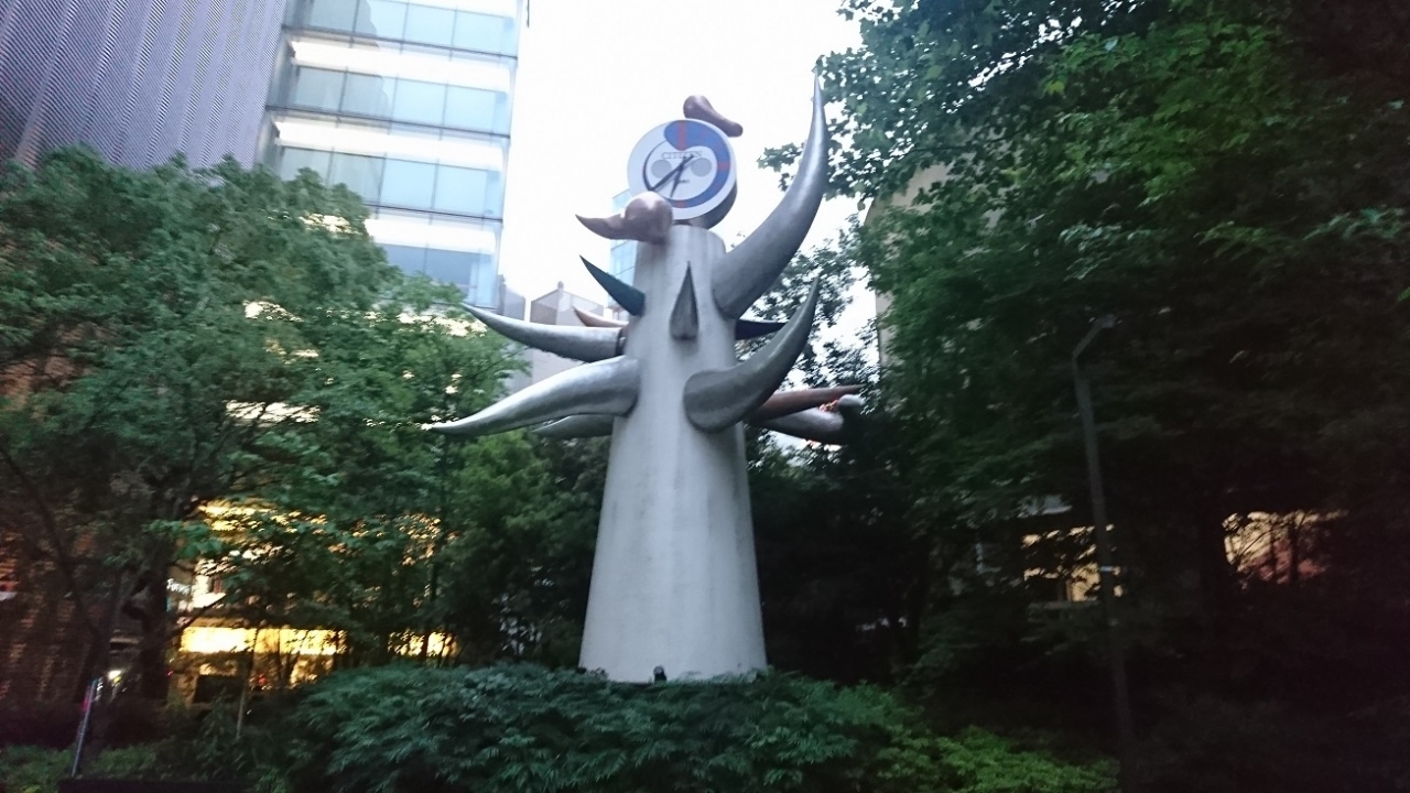 JR有楽町駅から徒歩3分程度、東急プラザと銀座ファイブの間にある数寄屋橋公園内に立っています。岡本太郎氏が昭和41年(1966年)に製作した独特なデザインの時計台です。大阪万博の太陽の塔よりも前に立てられたようです。銀座散策の際には是非お立ち寄りを!
