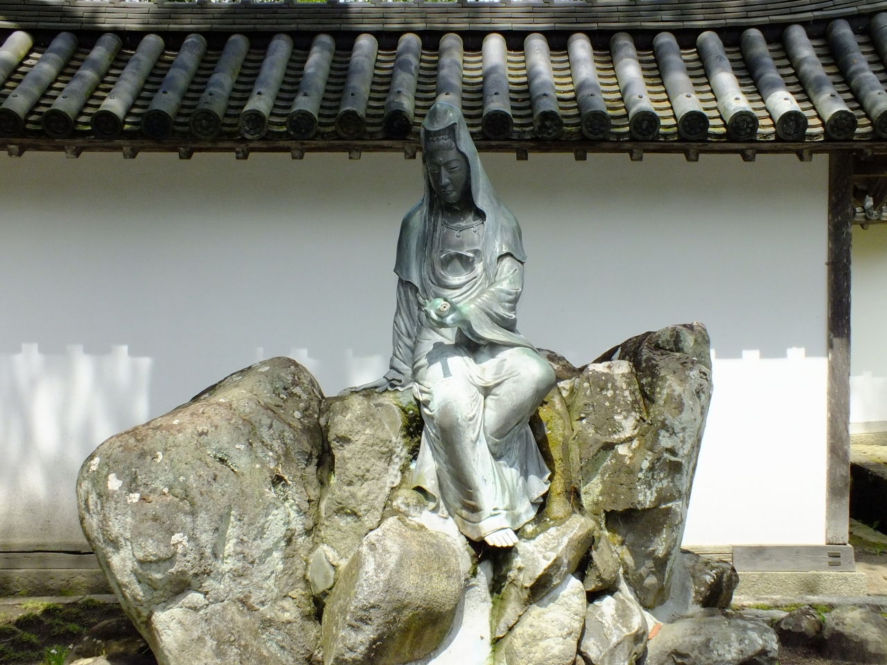 因みに写真は宝物館の外観をだしてもつまらないので、宝物館そばの庭の観音様です。