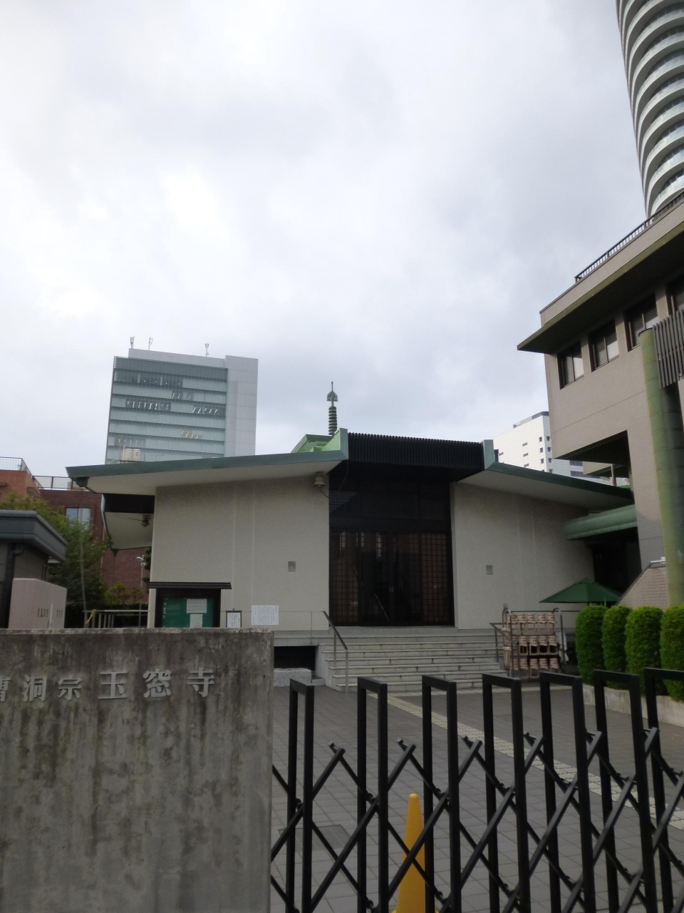 曹洞宗寺院の玉窓寺は、青山霊園のすぐ北に位置します。隣接する墓地はかなり大きいですが、お寺自体はコンパクトで、近代的な外観の本堂やアコーディオン型の門扉など、風情を感じることはありませんでした。すぐ近くに高層マンションが聳えているのも青山らしい光景でした。