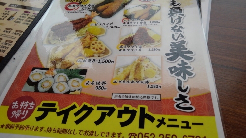 やはり大きなエビフライは魅力です。テイクアウトメニューもあるようです。