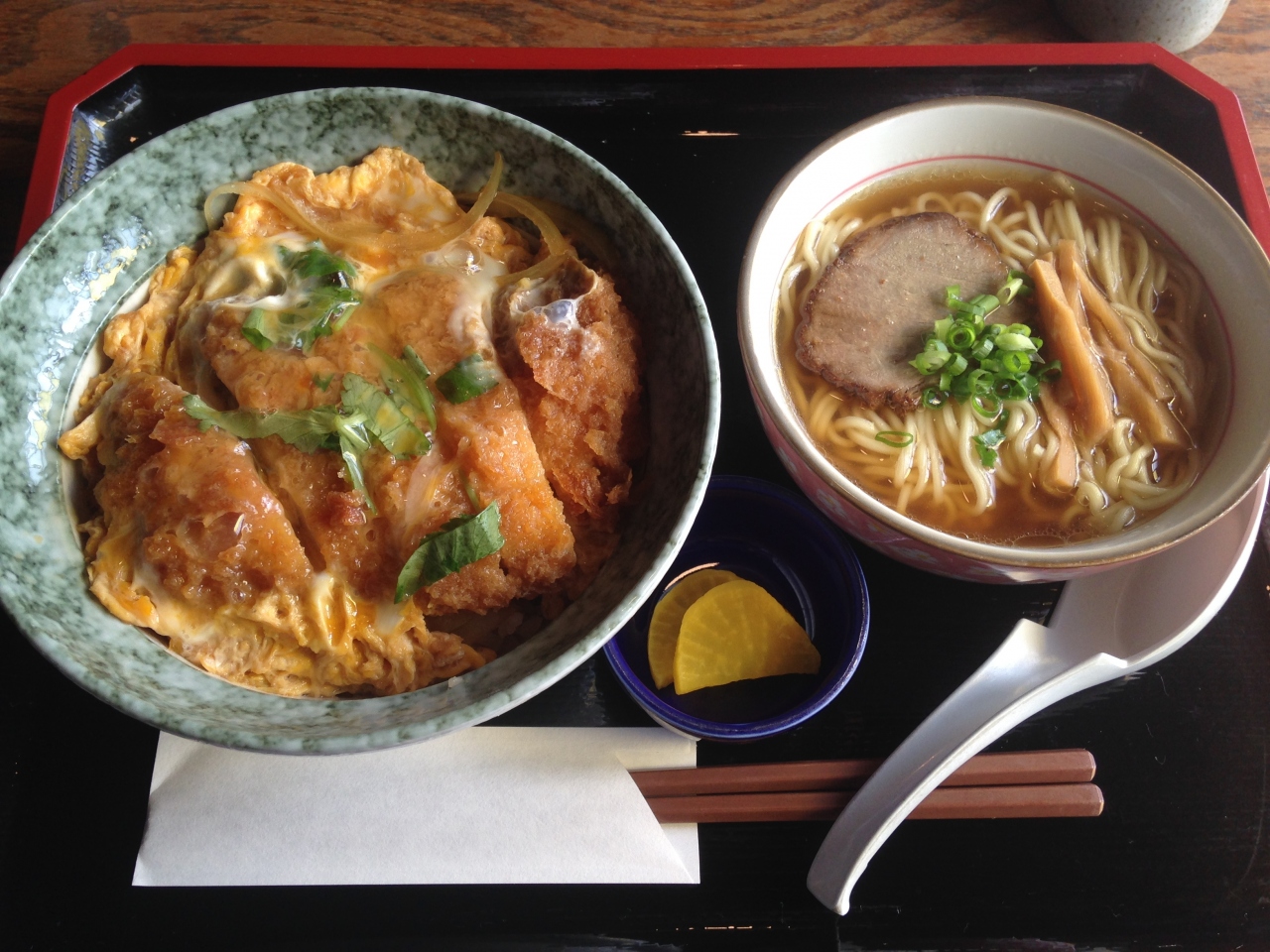 藤枝の郊外にあるカツ丼メインの食堂です。ランチでカツ丼セットをいただきました。ミニのカツ丼とラーメンのセットでボリュームあります。店名の由来は諸説あるようですが、ペンが立つ、ご主人の字がうまいからとか?