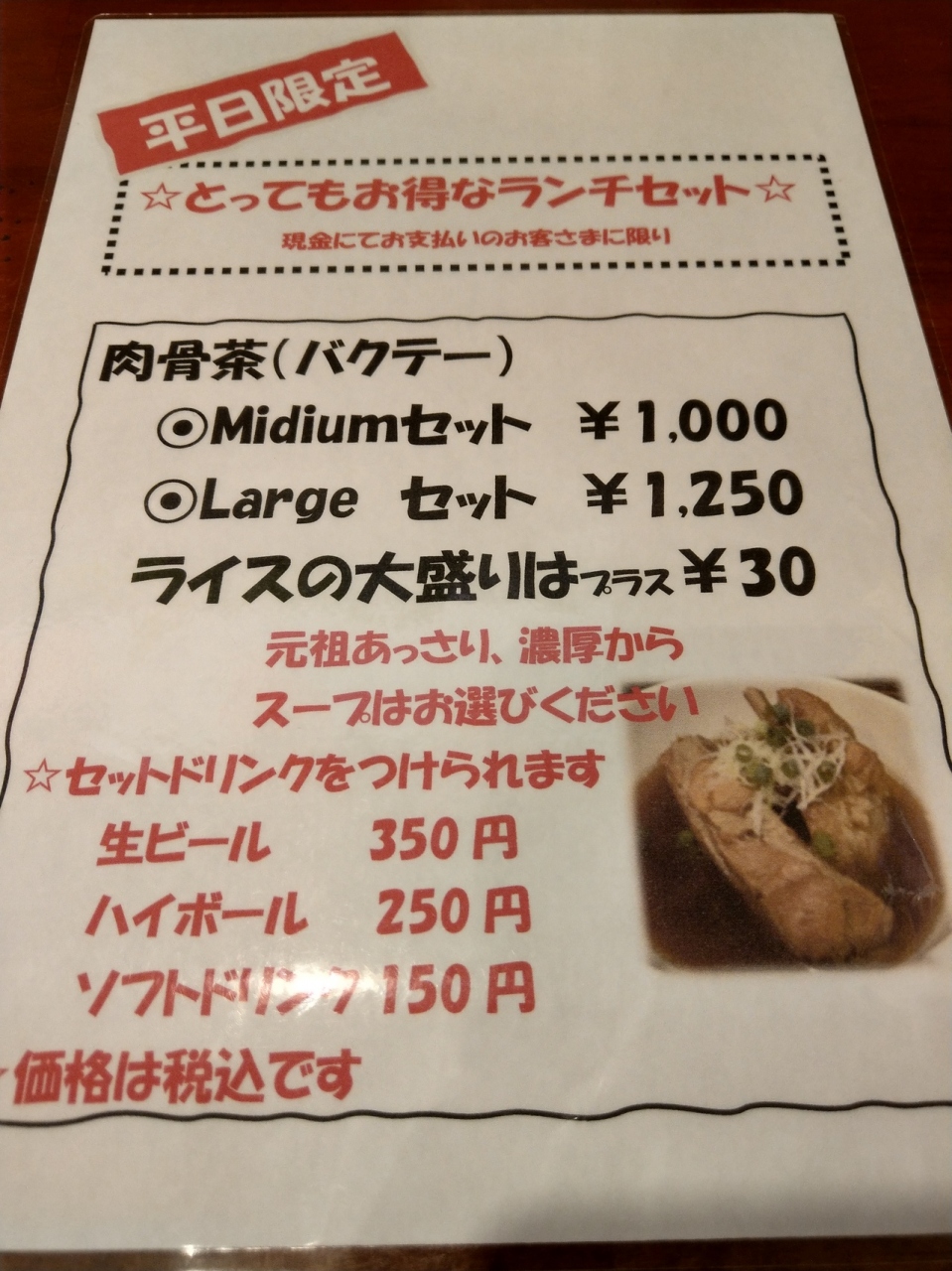 余談ですが、マレーシアの友人に画像を送った所、品が良すぎて、最初はバクテーと分からなかった。料金もTokyo price!と言っていたので、same to pavilion price!と返しておきました。