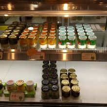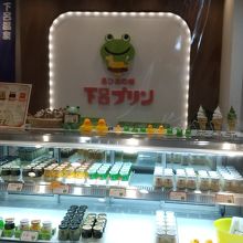 ショーケースには種類豊富でゼリーと二層になった色とりどりの可愛いプリンが並びどれも美味しそう。プリンの他にソフトクリームもありました。