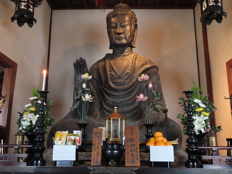 6世紀末に蘇我馬子の発願により創建された日本最古の本格的寺院。甘樫の丘の上からもよく見えていました。最初門の前に菜の花畑があり、いったんそれで満足してしまったのですが、肝心の飛鳥大仏を拝んでないことを思い出し、翌日再訪。度重なる修復のため、当時の姿をとどめているのはごく一部だそうなのですが、改めて参拝して大正解でした。