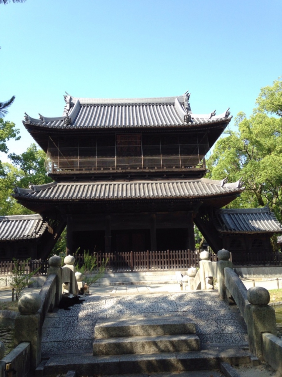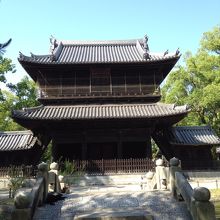 総門から境内に入って勅使門の裏まで移動し、無染池越しに正面にある建物です。パッと見は下をくぐれるようになっておらず、どっしりとした建物なので仏殿か何かかと思いましたが、よく見ると左右に2階に上る階段もあり山門の様式ですね。こういった大きな山門の例に漏れず中には観音像などがあるそうなので機会があれば見てみたいものです。