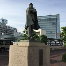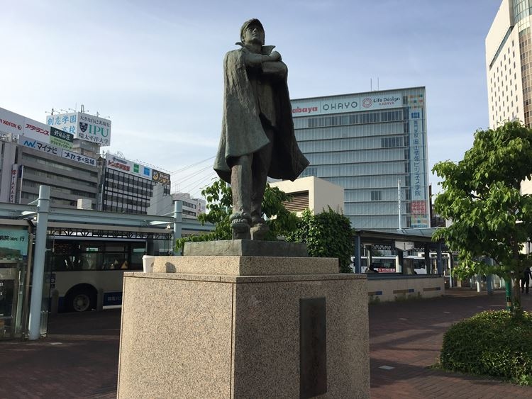 岡山駅東口にあります。駅前にあるモニュメントでは桃太郎像があまりにも有名ですが、この六高生記念像も待ち合わせ等に便利な目立つモニュメントだと思います。高下駄にマント…台座には青春感謝と刻まれています。