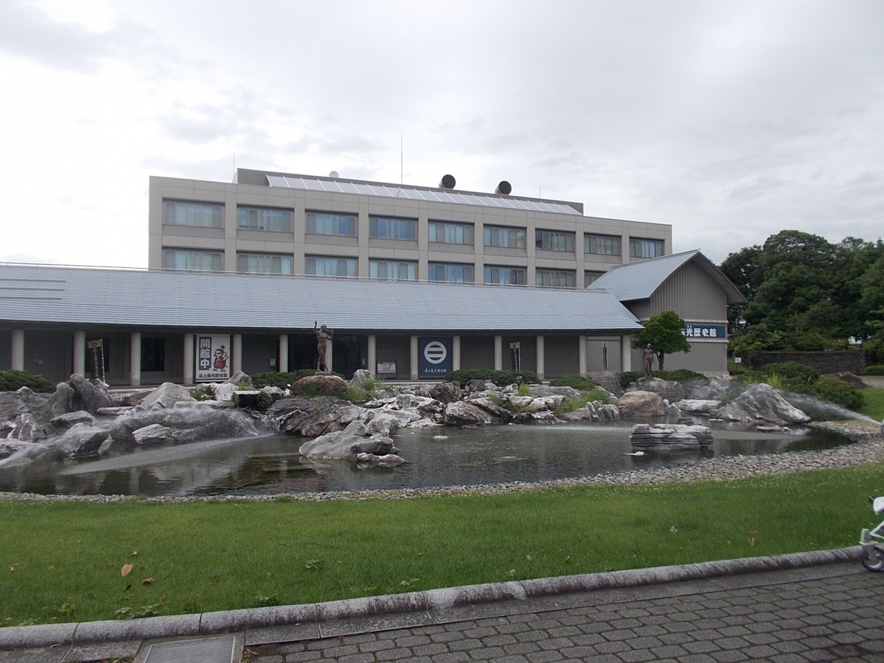 この最上義光歴史館は山形駅東口から北に10分程度の場所にあります。二の丸東大手門から東に出たエリアにあります。かつての三の丸跡地の一部です。建物の前には噴水があります。また義光公の立像もあります。展示は義光公とともに最上家の歴史を紹介しています。