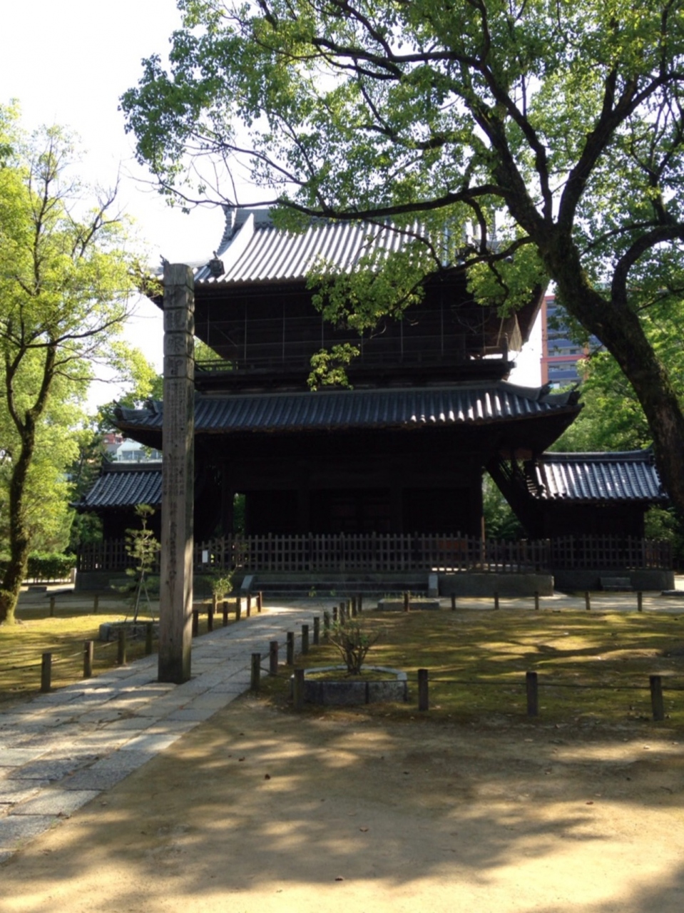 総門から入ると境内の南側の角にあたるので何となく裏側なのかなと思ってしまいます。近くの勅使門から入れてその正面の三門も下をくぐれれば、その先に仏殿があって一直線になっているので違和感がないのかもしれません。そういった意味で境内の案内図を見て全容を把握してから巡ると良いと思います。見所はたくさんあって猫にも出会えるし博多駅からもそう遠くないのでよい散策スポットだと思います。