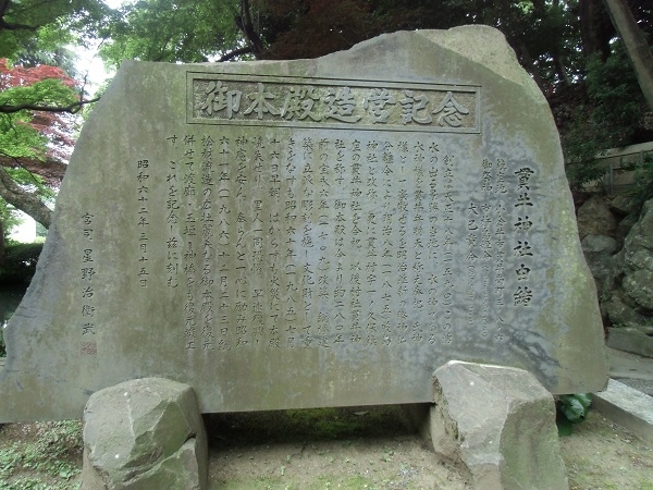 境内に由緒を刻んだ石碑があり、それによると創立は天正18年(1590)、湧水の地ということで水神様を奉祀しています。