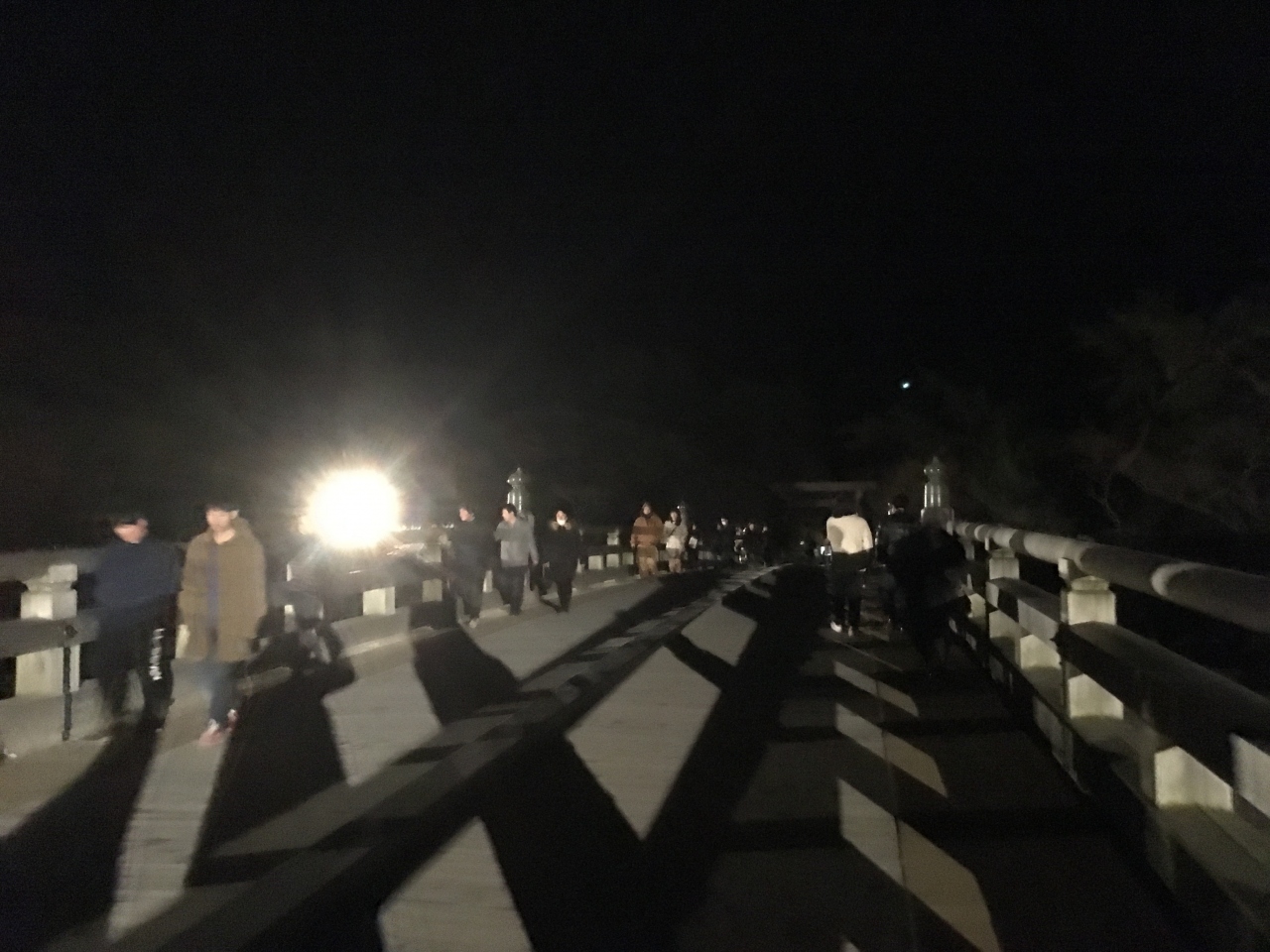 大鳥居をくぐり、宇治橋を渡ると、長い参道が続きます。
