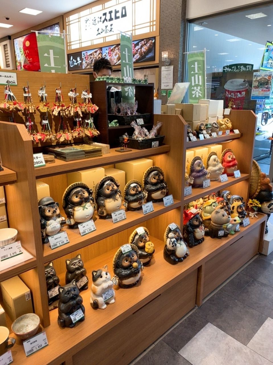 関西を中心に色々なお土産が揃います。 お菓子系のお土産は滋賀のものは数種類しかなくて寂しい感じですが、その代わり?信楽焼のたぬき像や焼き物が結構売ってます。 高速のSAとしてはなかなか珍しいラインナップかもしれない!