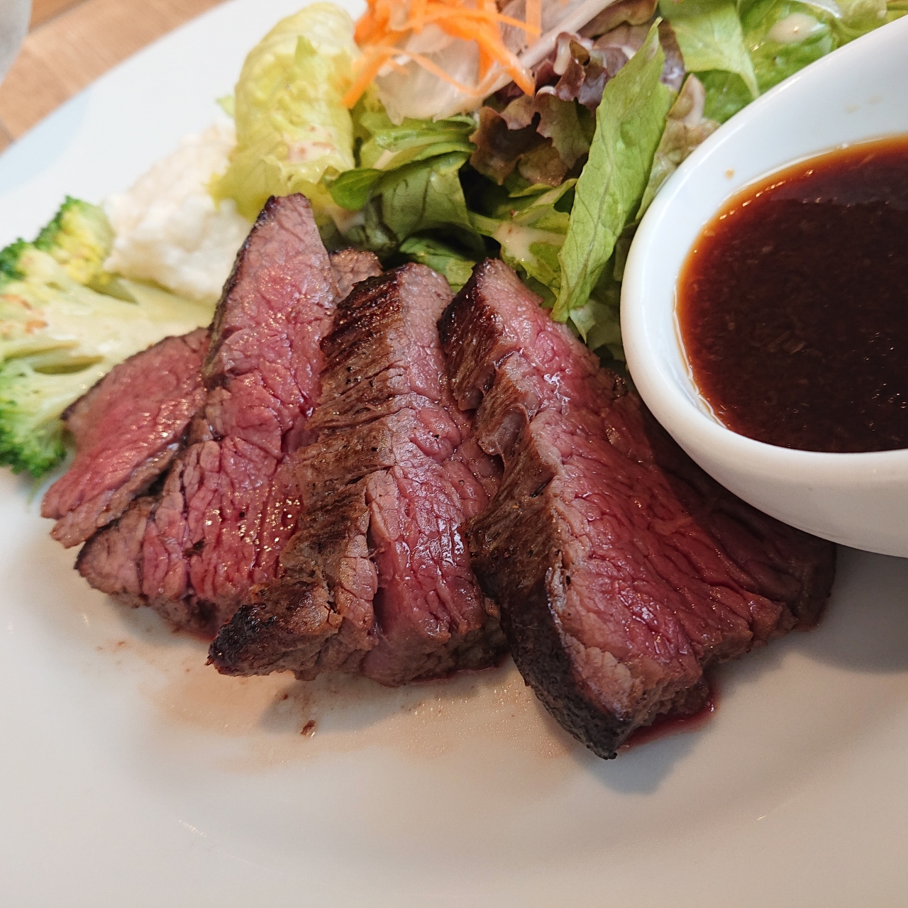 京阪電車の枚方市駅、ステーキでググったらこの店がヒット。場所はビオルネの3F。2階にあるガストは混んでいたが、こちらは3割の入り。