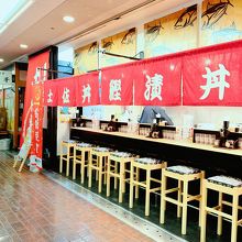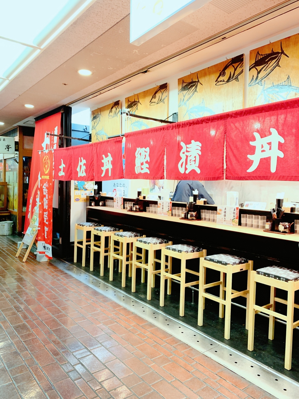 サンプラザは隠れた名グルメの宝庫です。そのひとつがこちら。鰹のたたき丼が食べられます。だしをお吸い物がわりにして、丼にかければお茶漬けとしても味わるというひつまぶし感覚です。鰹のフライもあってそちらもおいしいです。