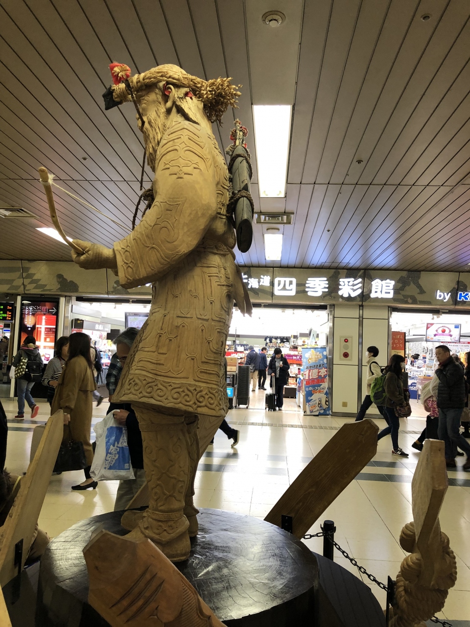 JRの西改札口を出たところにあります。かなり大きな木製の像になります。待ち合わせの場所になっているのか、何人かがスマホを見ながら像の周りに立っていました。ただ、周囲の色に同化してしまって、ちょっと目立ちにくいかなという印象を受けました。