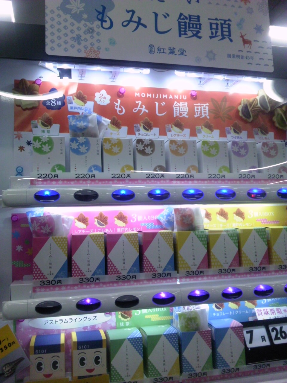 色々な味のもみじ饅頭があります。しかも自動販売機の販売がされていることがユニークでした。スタンダードなあんこだけでなくクリームや抹茶など種類が豊富です。ふんわりとしたパン生地に香ばしい風味と甘いあんこが入っておいしかったです。
