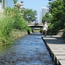 テレビ塔裏や南3条の辺りでは、階段から川面に下りて水とのふれあいを楽しめるようにもなっていて、遊具はありませんが、小さな子供でも楽しめます。