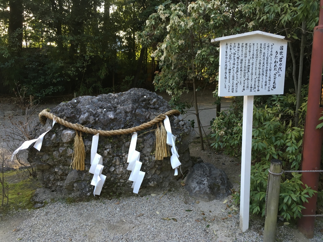 長い参道を歩くと「さざれ石」があり、パワーをいただきます。