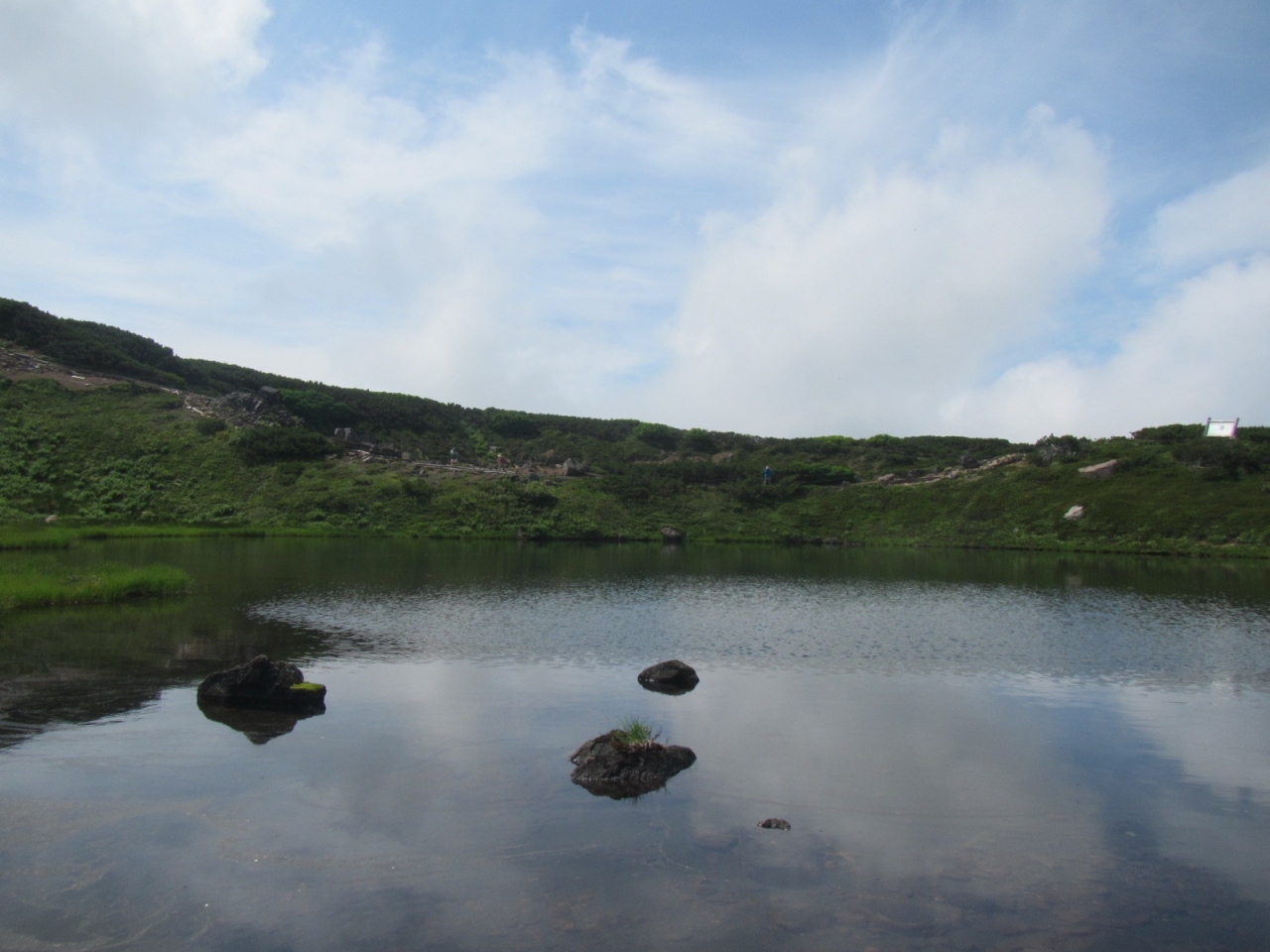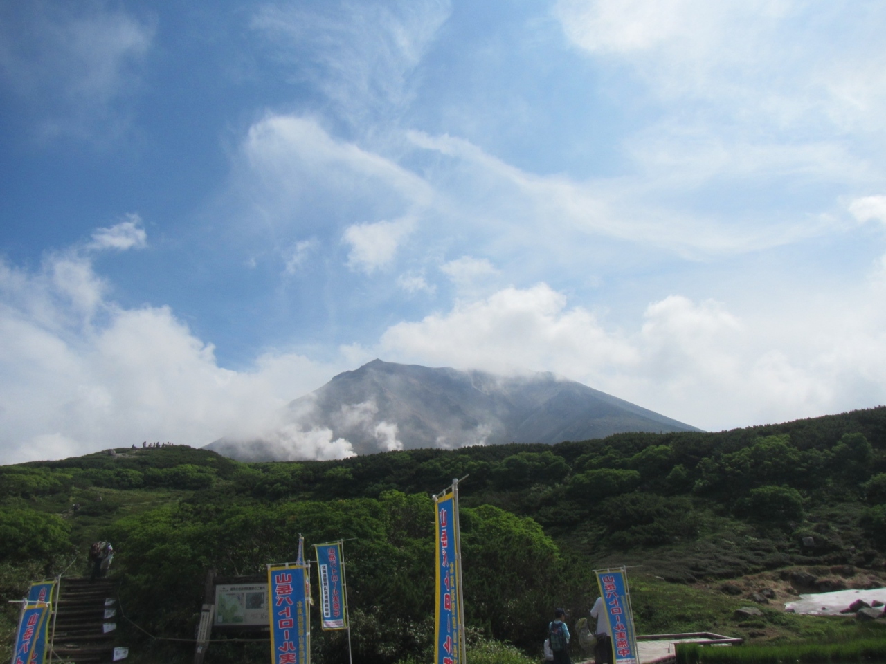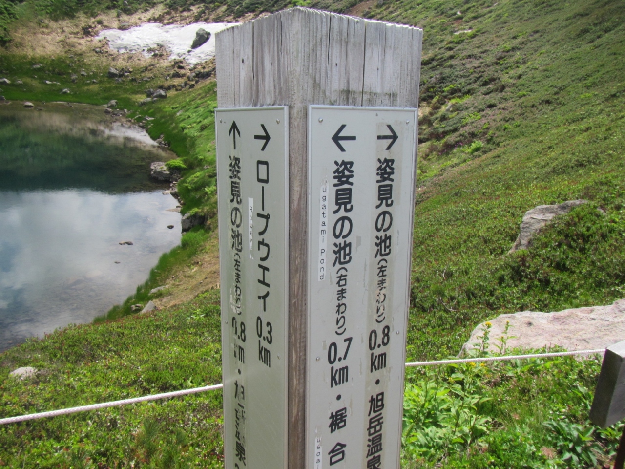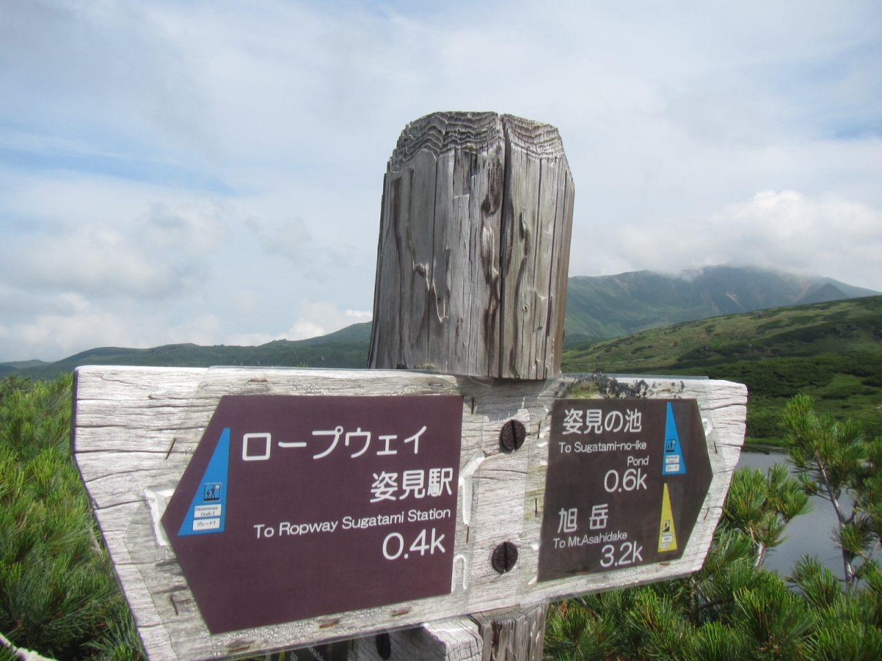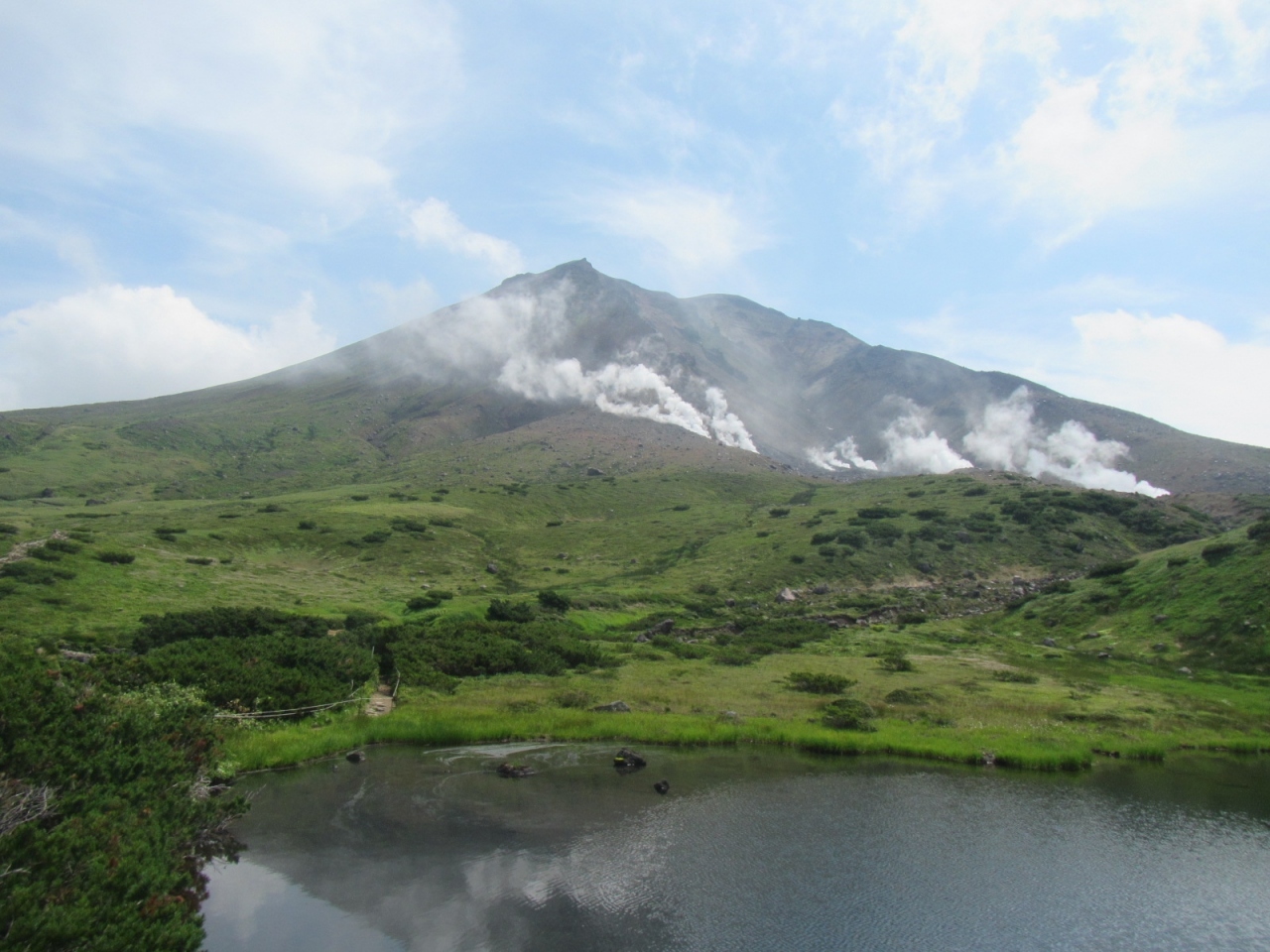 標高1600m~1700mで、正面にそびえる北海道の最高峰、旭岳を眺めながら、姿見の池、鏡池など、迫力がありながらも美しい池の景色を鑑賞できるやや平らな高原です。