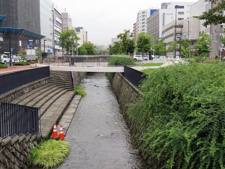 碁盤の目状に区割りされた、札幌の街の東西を区分する境界の役目を果たしている川です。自然河川ではありません。よってランドマークのひとつと言えます。街のど真ん中を流れていることで親水公園の役割もあります。南北の境界が大通り公園なので、両者が交差する場所に立てば、街のど真ん中にいることになります。