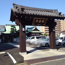 本堂前に傘をさしているような門が