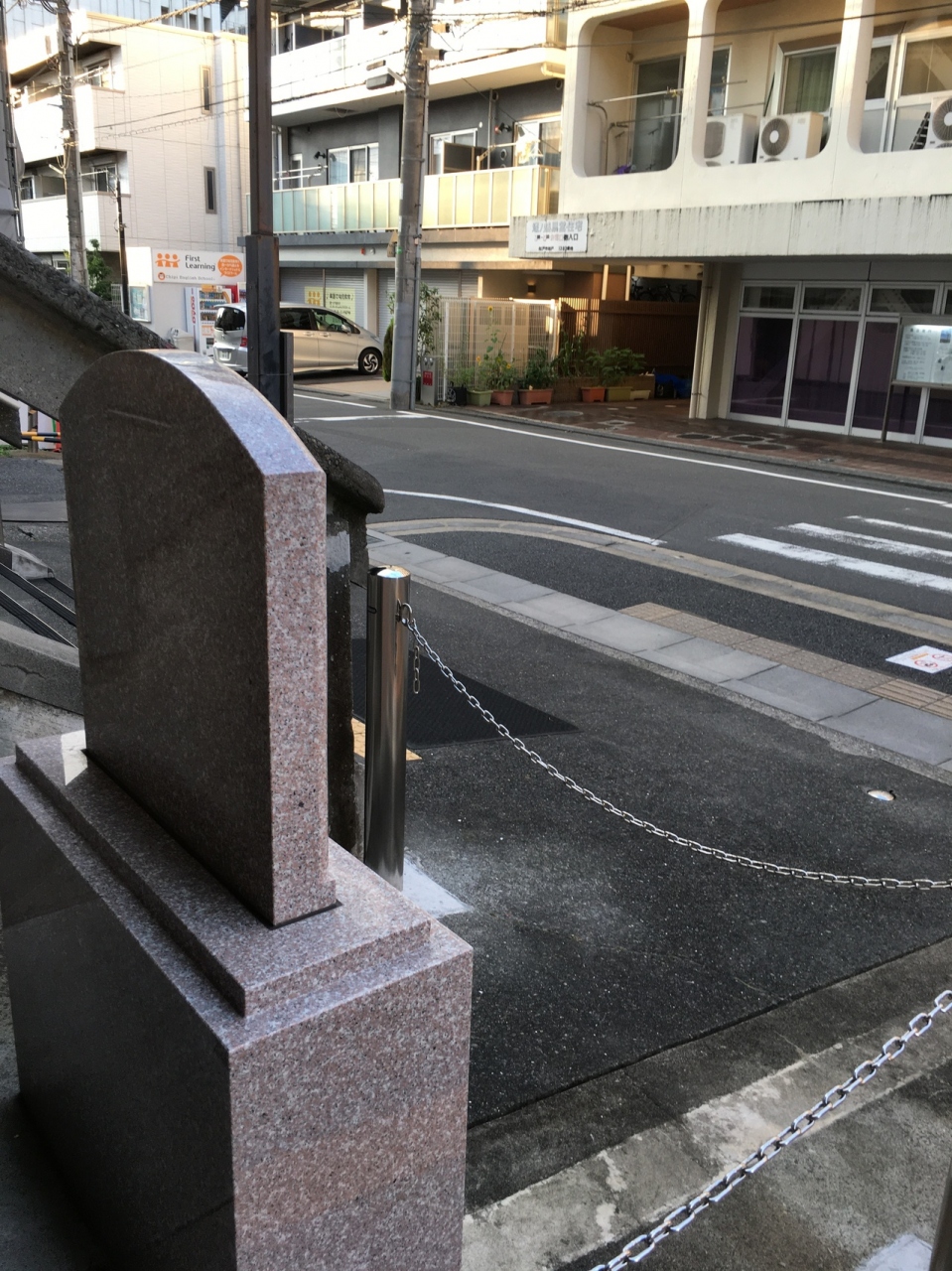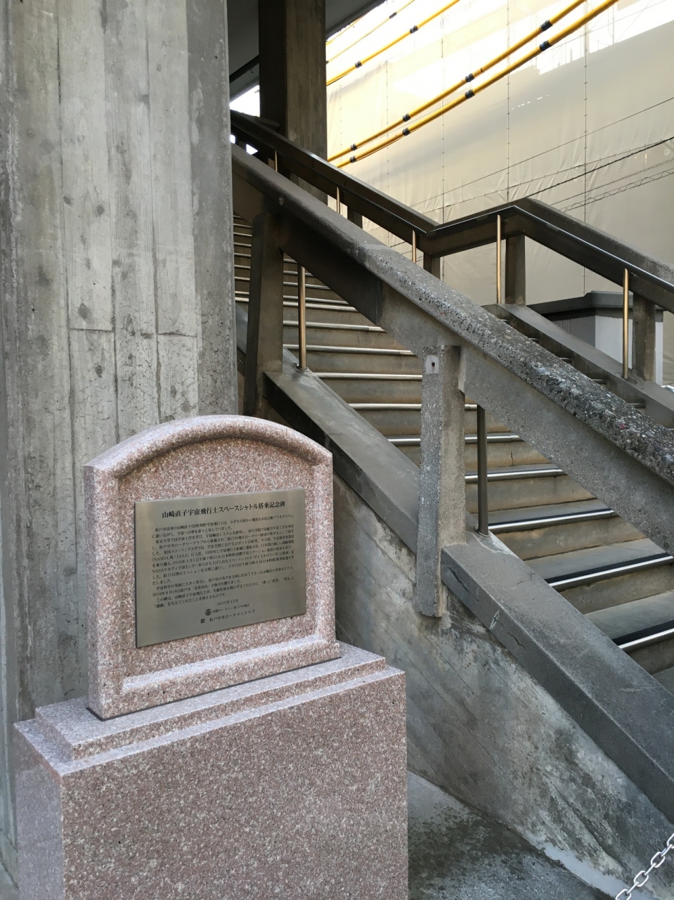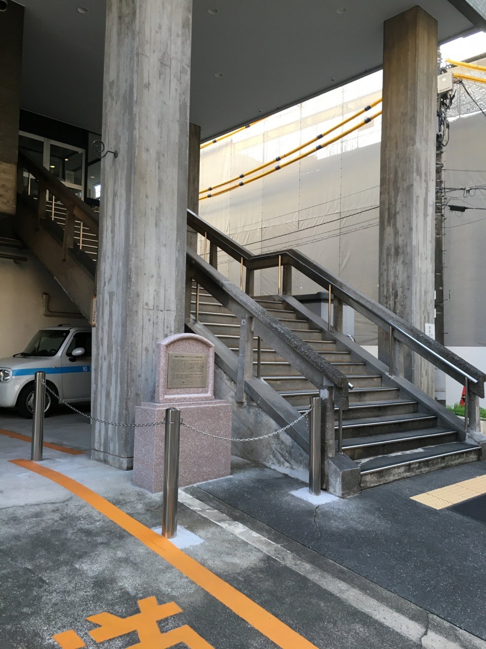 松戸市民会館の右端にありよく見ない見ないと見逃してしまいそうな石碑でした。山崎氏の功績を称える綺麗な石碑で簡単に山崎氏のことの記載がありました。よく見ると外国のお墓のようにも見えました。右横には階段があります。