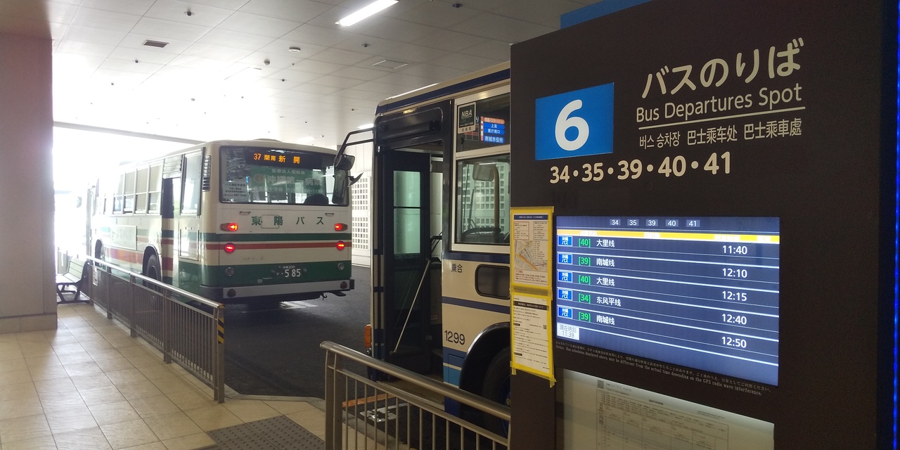 かつて平面だったバスターミナルは、2018年にリニューアル。複合ビルの一階にバスターミナルが完成しました。
