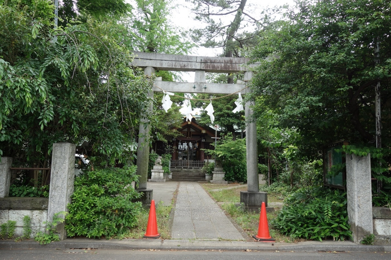 哲学堂公園の東側に位置する神社です。鳥居から境内に入るとうっそうとした木々の中に拝殿が有って静かで独特の雰囲気を感じました。江戸時代に葛ヶ谷村の鎮守としてお祀りされた神社で、神楽殿や境内社なども有りました。