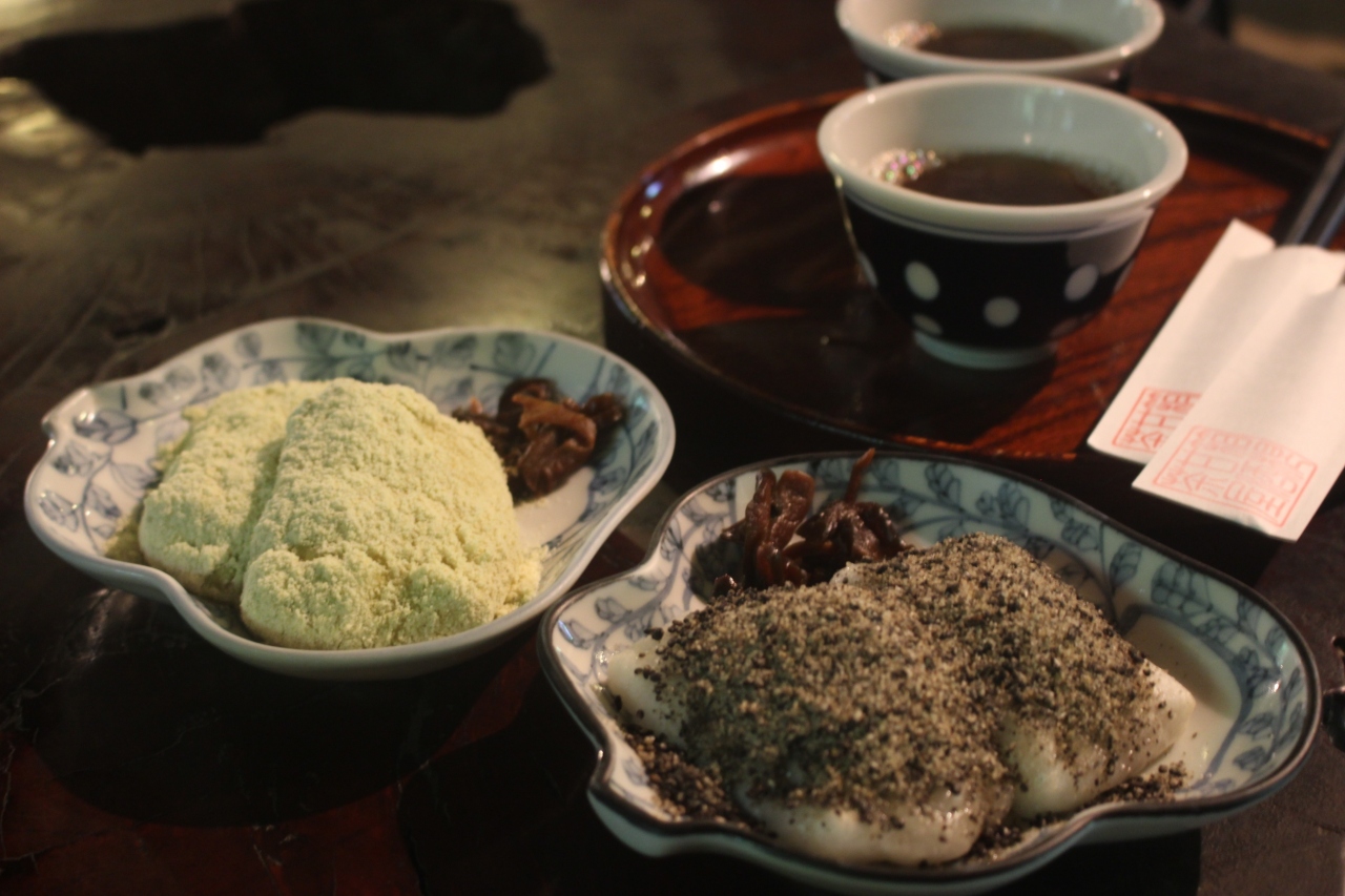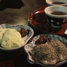 おもちのセット500円を注文しましたが、2個で結構おなかがいっぱいになるので、2人なら1皿注文して1個ずつがいいかもしれません。