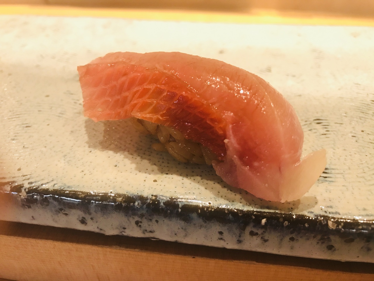 江戸前鮨のお店で、シャリはかなり茶色でした。花板さんが目の前の特等席にご案内頂きましたが、ネタが目の前に用意されるため、私の飛沫が飛ぶのでは?と気になって仕方ありませんでした。ご飯粒がたまにまな板に残ったりするのも気になる。