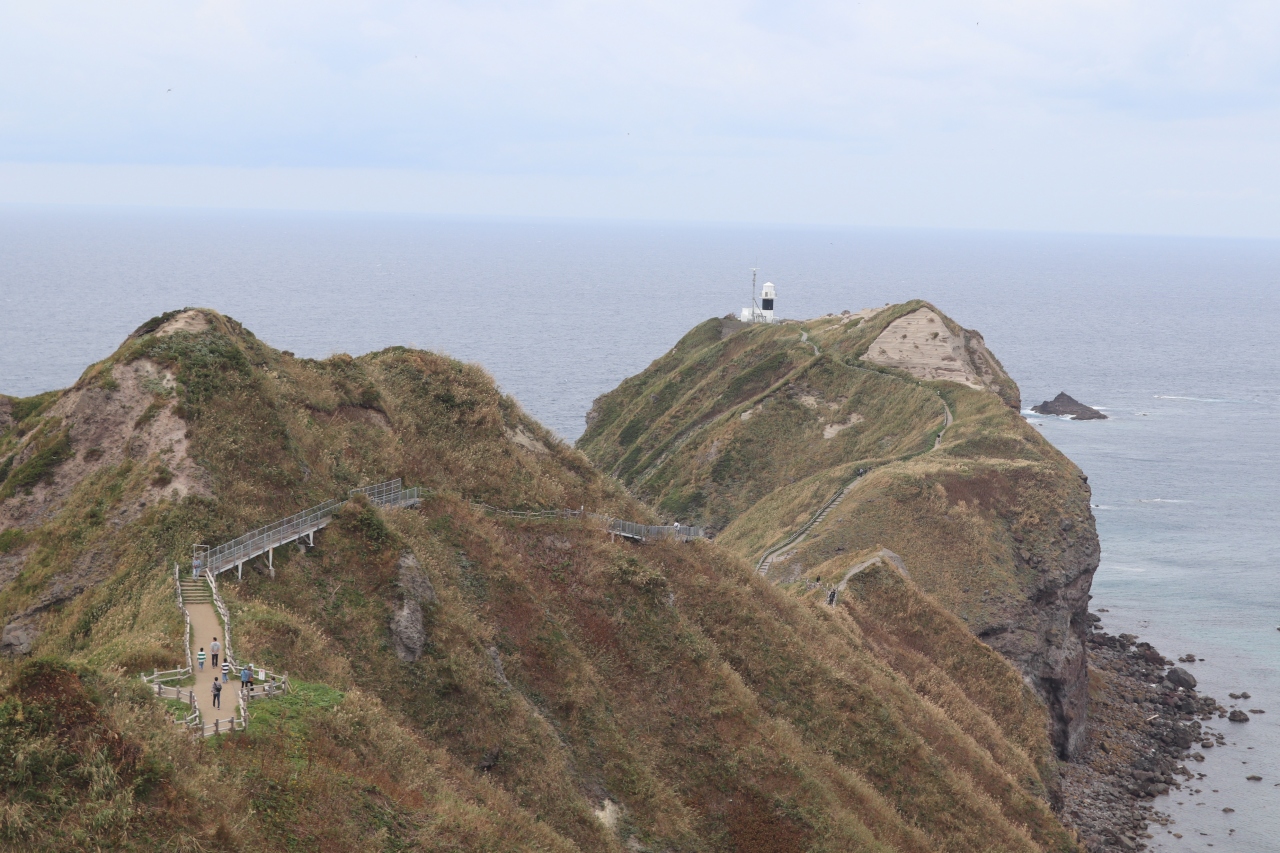 積丹半島の景勝地。駐車場から岬の先端まで遊歩道が通じています。女人禁制とかかれた門を抜け通常で20分ほど。岬の尾根を進みますが、アップダウンが激しく、先を見るだけで足が止まってしまいます。また風も強いので思うように進みませんでした。