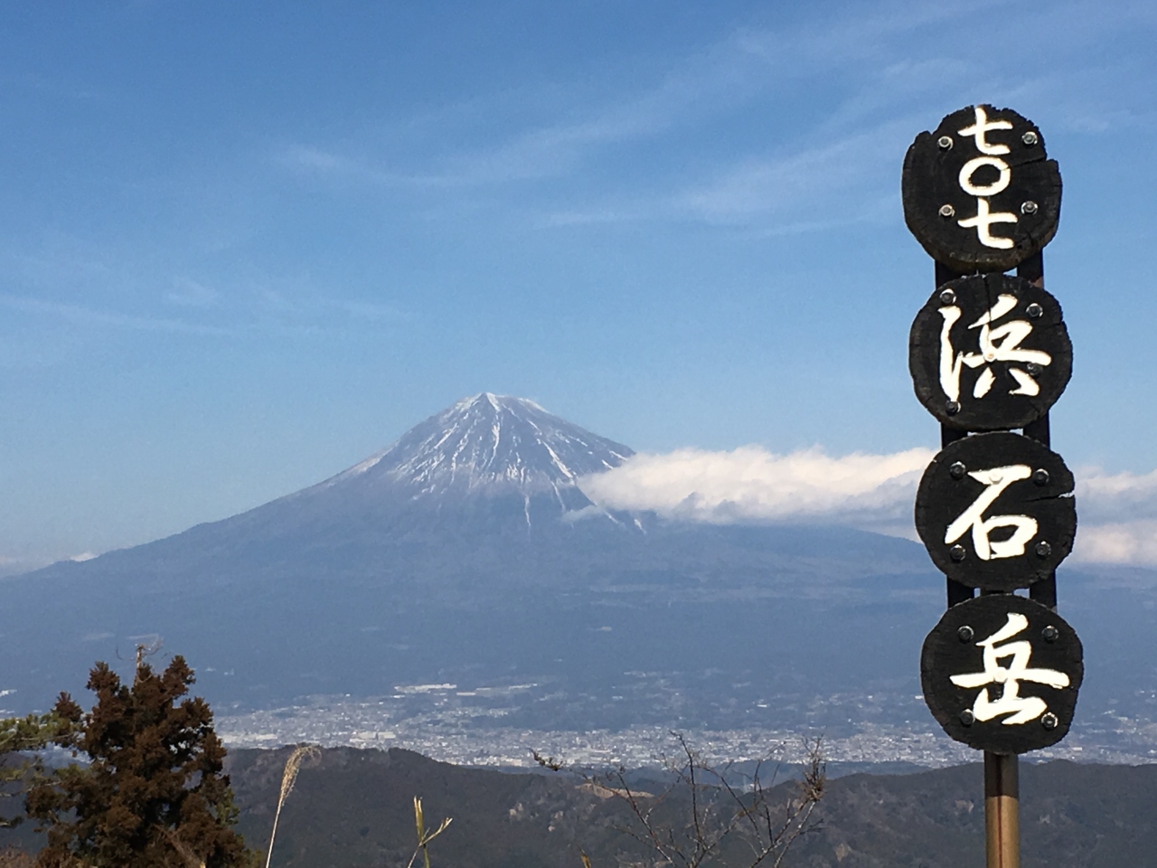 山頂まで車道が通じていますが、由比からゆっくり歩いて3時間の登山でした。全コースではありませんが、車道とは別に遊歩道もあり、森林浴をしながらの登山です。青少年野外センターをすぎるとまもなく山頂です。707メートルの山頂からは美しい富士山を眺めることができました。