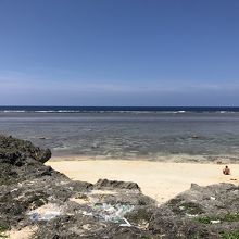 砂浜、海自体はとても綺麗なのですが、手前のゴツゴツした岩のところに