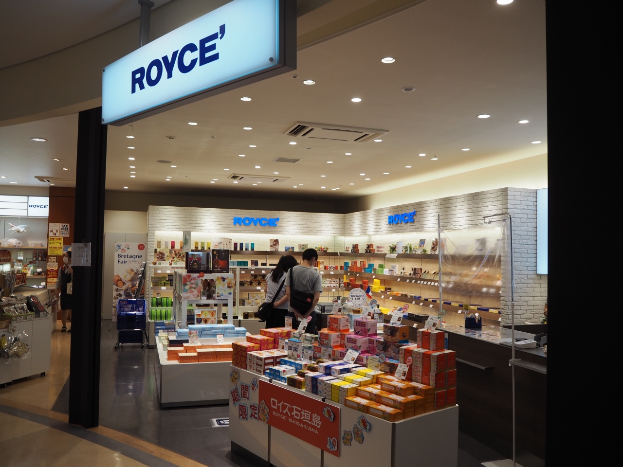 凾館空港のターミナルビルの2階のお土産品売り場にロイズの店はあります。お土産店コーナーの端の方にあります。ロイズは北海道のチョコレート店ですが、季節限定のキャンペーンで石垣島ロイズのコーナーで石垣島で造られている紅芋チョコレートやかんりんとうチョコレートなどの商品がありました。函館で沖縄の石垣島のチョコレートが売られているとは日本は広いです。