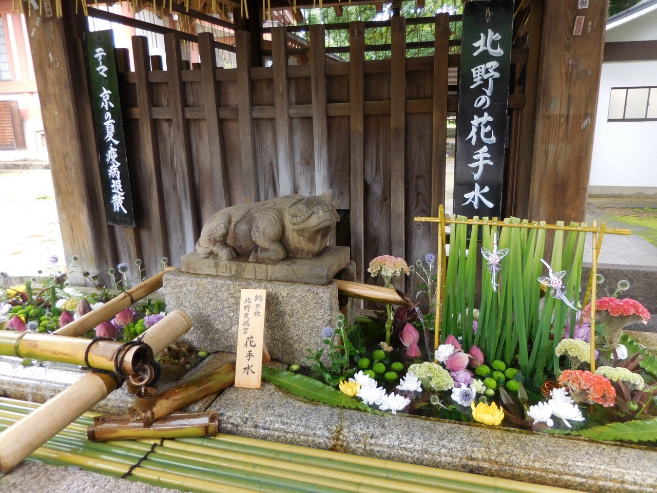 学問の神様、菅原道真公をお祀りする天神信仰発祥の神社です。国宝の本殿はもちろんのこと、有名な梅苑や宝物殿など、見どころ満載の神社です。私が訪れた時は楼門入ってすぐの手水舎に生けられた花がとてもきれいでした。