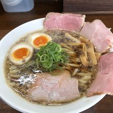 グランキューブからの帰りに寄りました。お昼ご飯時は行列ができますが、13時前だとすぐに入れました。太麺でこってりとあっさり中間的なスープで、素朴ですがしっかりとした味で美味しかったです。久々にいいラーメン店を見つけました。
