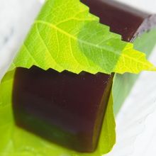 水羊羹というと、容器に収められた状態で提供される事が多いが、今回はカットされたのがそのまま提供された。そんな事もあり、普通の羊羹に見える。