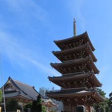 寺町界隈はほんとうに寺院が多く、数にして軽く30を超えます。宗派も規模もさまざまで塔頭を従える大寺院から、住職さんの自宅の表札が見えるお寺までバリエーションに富んでいます。その中で日蓮宗の最北の本山であるこのお寺は五重塔がそびえたち、一見して格の高さが見て取れます。