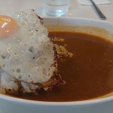 米子を代表するカレーのお店。米子駅から駅前通りを西に500メートルくらいのところにあり、ランチ時は行列ができるとのこと。女性二人で切り盛りしており、お昼を過ぎると売り切れになることも。確かに11時過ぎに訪問しましたが、カウンター席のみのお店は既に満員。作り置きをしないお店なので、カツは注文後に衣を付けて揚げる、ハンバーグは目の前でこねはじめて焼く。ある意味基本なのですが、これができているお店はそうないと思う。バーグカレーかチキン(唐揚げ)カレーで迷いましたが、今回はバーグカレーを注文。ハンバーグは粗びき感が残っていて、玉ねぎが良いアクセント。お肉のワイルド感も味わえます。カレーはスパイシーなインド風のもので、さらっとしています。チキン定食やハンバーグ定食も人気で、サラダと小さなカレーがついてきます。定食のカレールーは大盛りにすることができるとのこと。その手があったのかぁ。次回は定食かな。