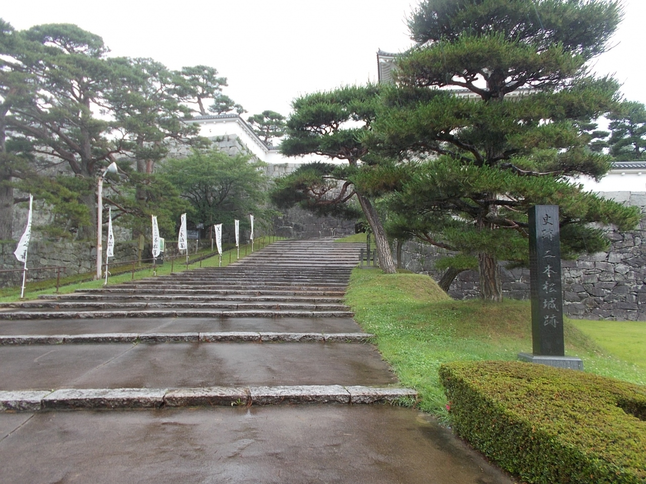 この福島県立霞ヶ城公園(国指定史跡二本松城跡)は二本松駅北口から北に約30分程度かかります。大手門跡である久保丁坂入り口からも峠を越えた行くような地形です。二本松城址は山城です。三の丸から本丸までも山を登るのです。その代わりに本丸跡からの景観は素晴らしいです。