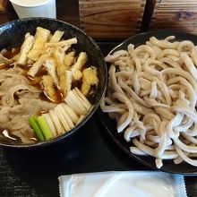 武蔵野うどん黒は粉の皮からひいたうどんでやや黒く風味がよいです。